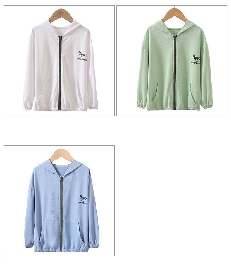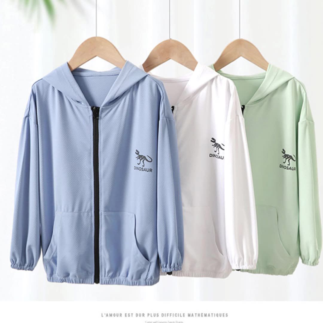 UPF50+鳥眼布透氣連帽防曬外套-小恐龍-藍色