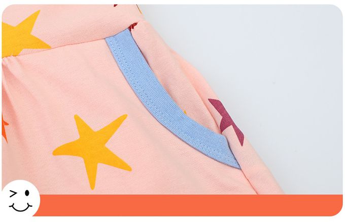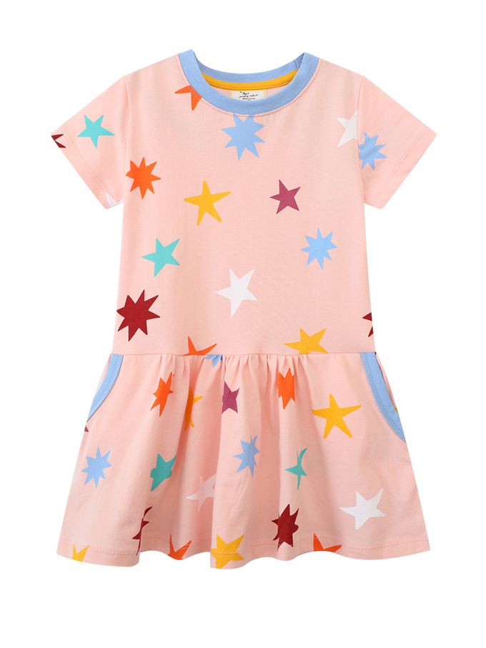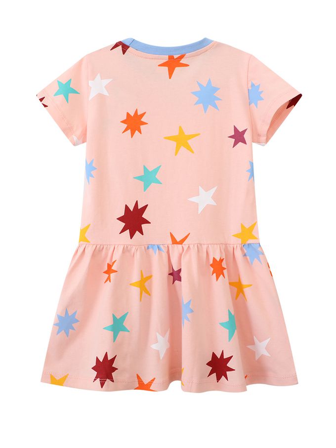 棉質圓領短袖洋裝-繽紛星星-粉色