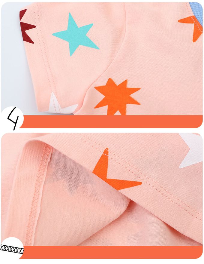 Jumping meters - 棉質圓領短袖洋裝-星星獨角獸-粉橘色