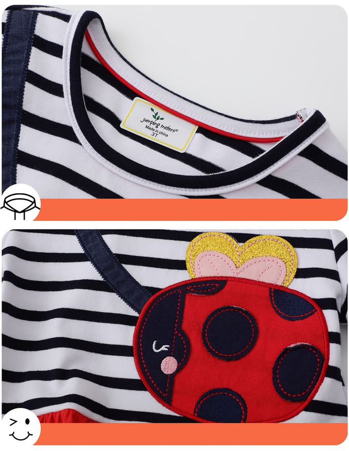 Jumping meters - 棉質圓領短袖洋裝-兔子花卉-黃色條紋