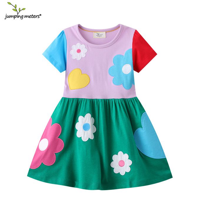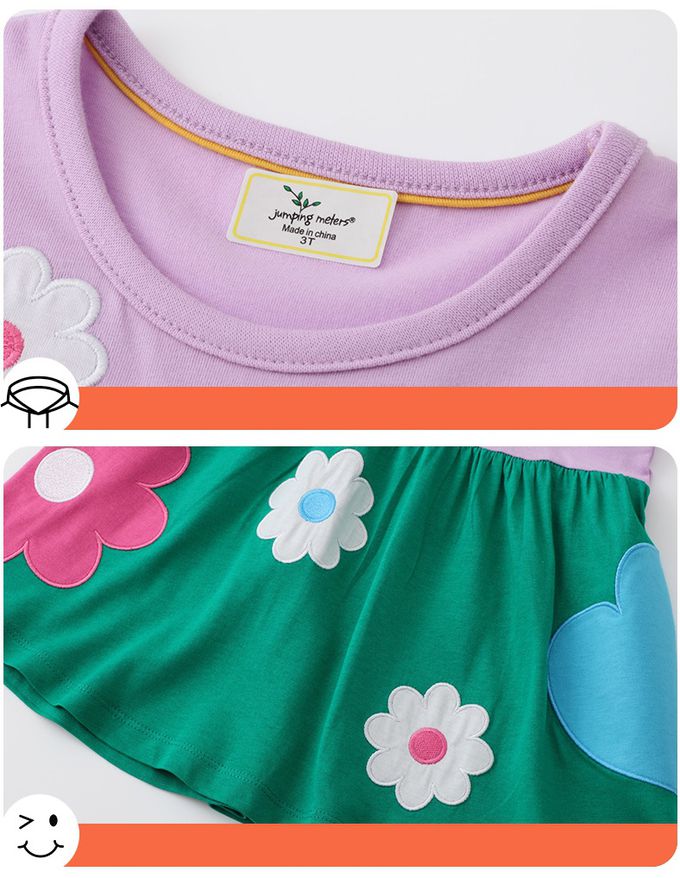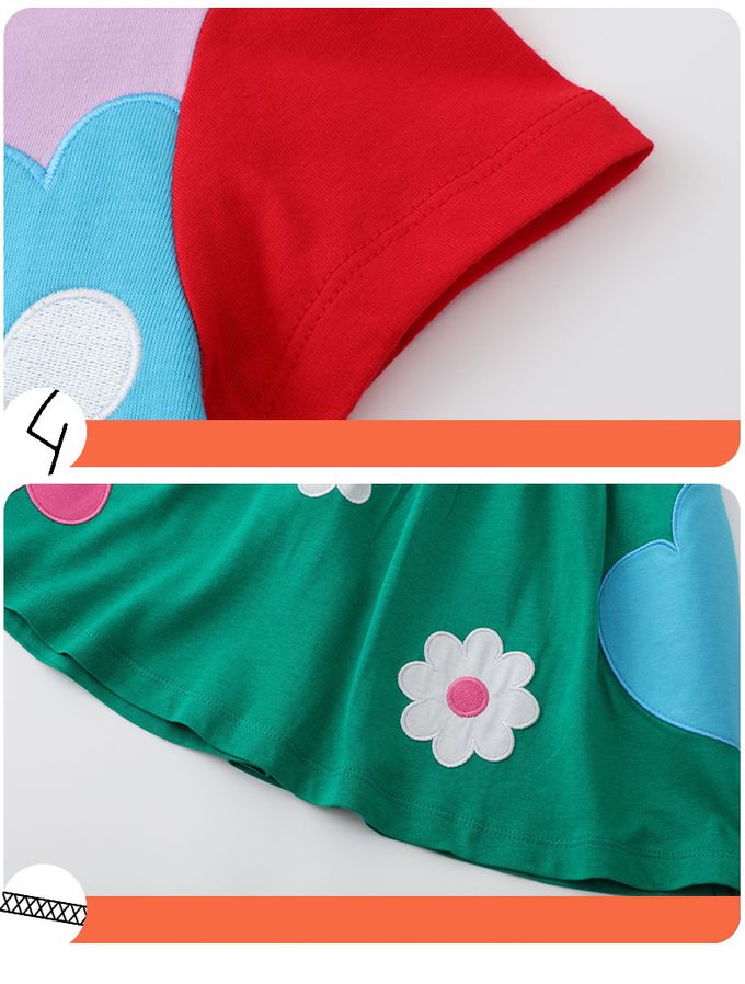 棉質圓領短袖洋裝-花朵愛心-活力拼色