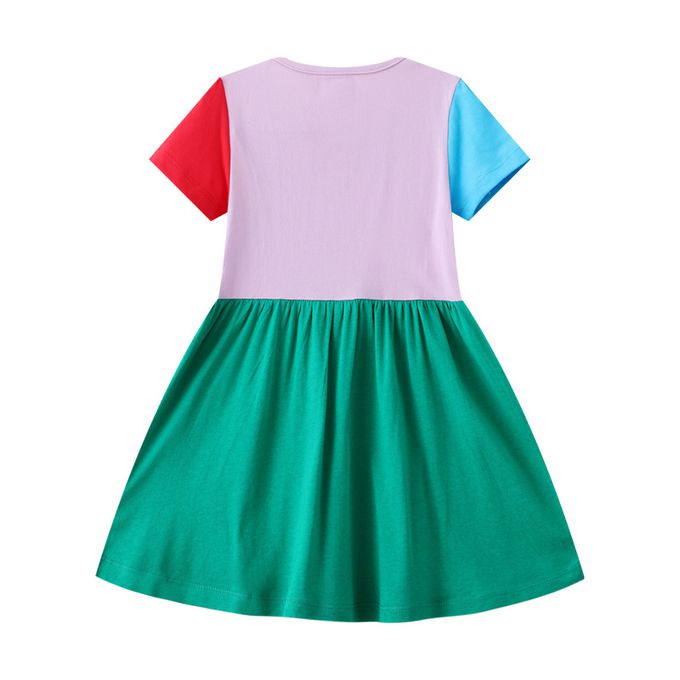 Jumping meters - 棉質圓領短袖洋裝-彩虹獨角獸-深藍色