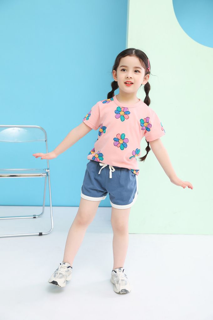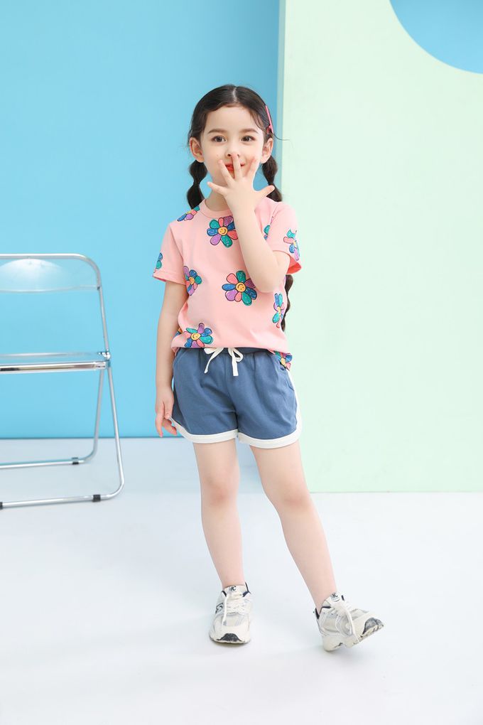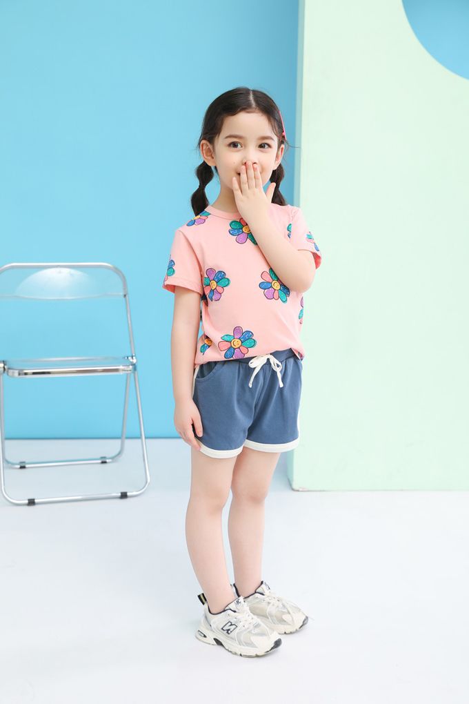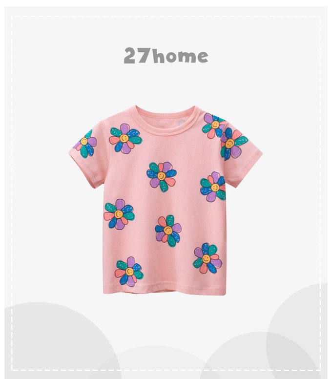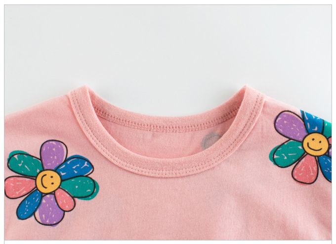 純棉短袖上衣-笑臉花花-粉色