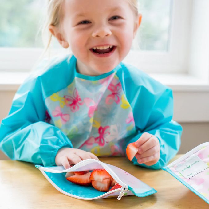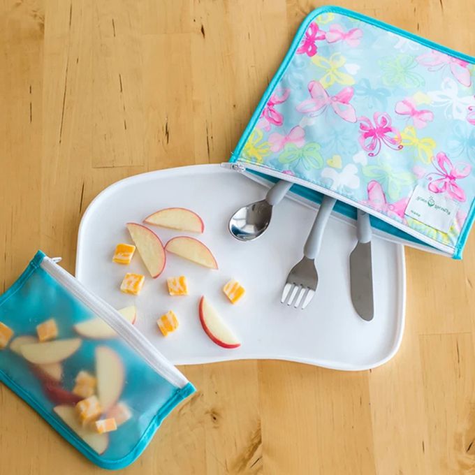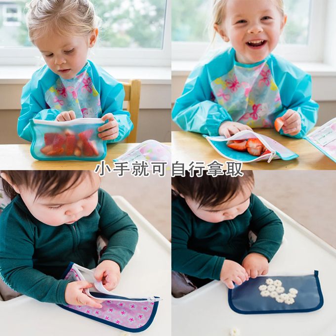 🌺 可重複使用食物袋、零食袋、用品袋,可裝置食物、食物器皿(湯匙或叉子)、固齒器、奶嘴等用品