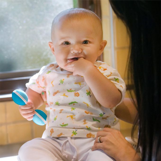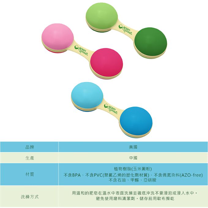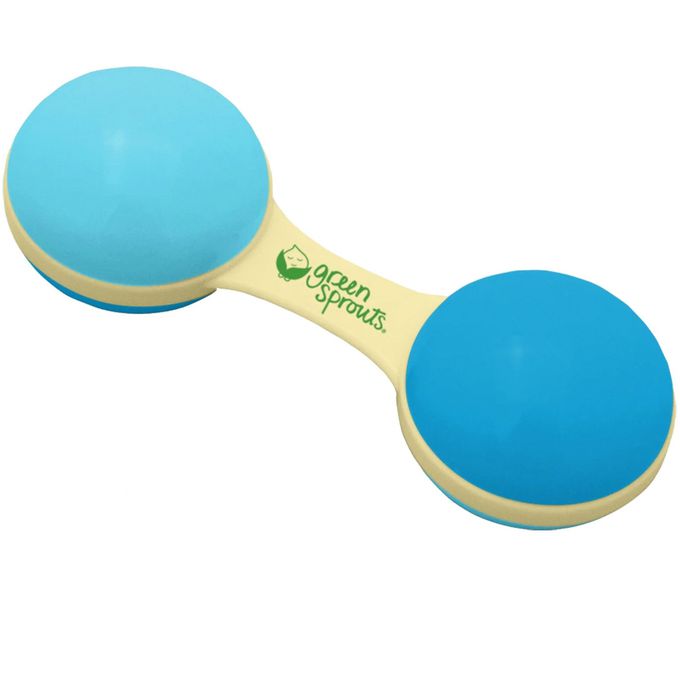 美國 green sprouts 小綠芽 - 安全無毒天然植物樹脂製成啞鈴波浪鼓-水藍色