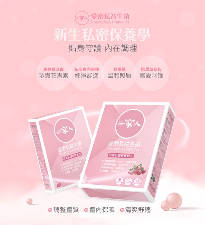 D-甘露糖、果寡糖、鼠尾草萃取物(鼠尾草萃取物、麥芽糊精、二氧化矽)、專利私密複合益生菌[乳酸菌(瑞士乳桿菌LA25、乳酸乳桿菌LDL114、
