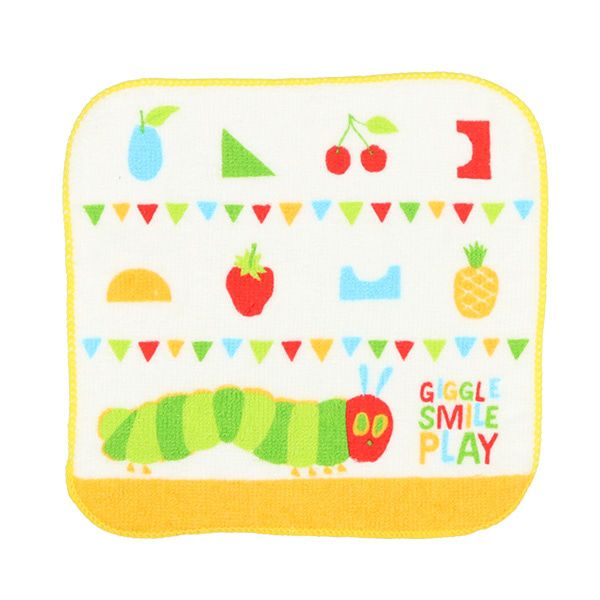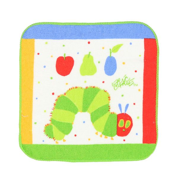日本西松屋 - 純棉上學擦手巾/手帕(5入組)-好餓的毛毛蟲 (16×16cm)
