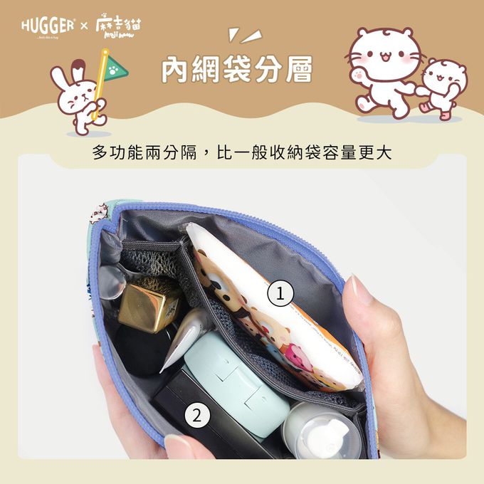 可填裝比一般小收納袋多1倍以上的空間,用過的家長都推薦HUGGER萬用小物袋!