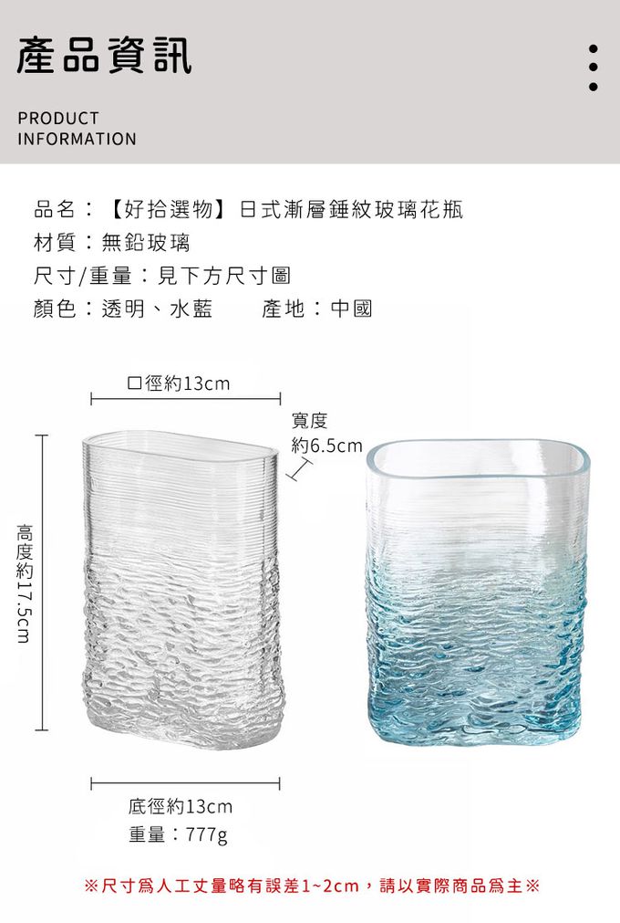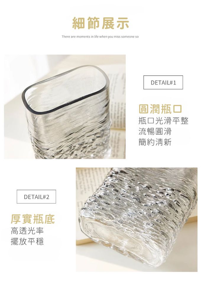 *玻璃製品在製作過程因冷熱收縮會有微小氣泡、紋路、些微刮痕,表面不平整紋路、小點(手摸得出來)、水波紋,小凹痕,瓶身也會有接痕(每支都有)等以上情況都是正常的,不影響商品正常使用並不是瑕疵品喔!