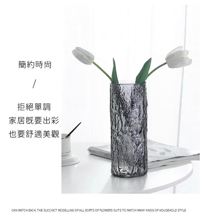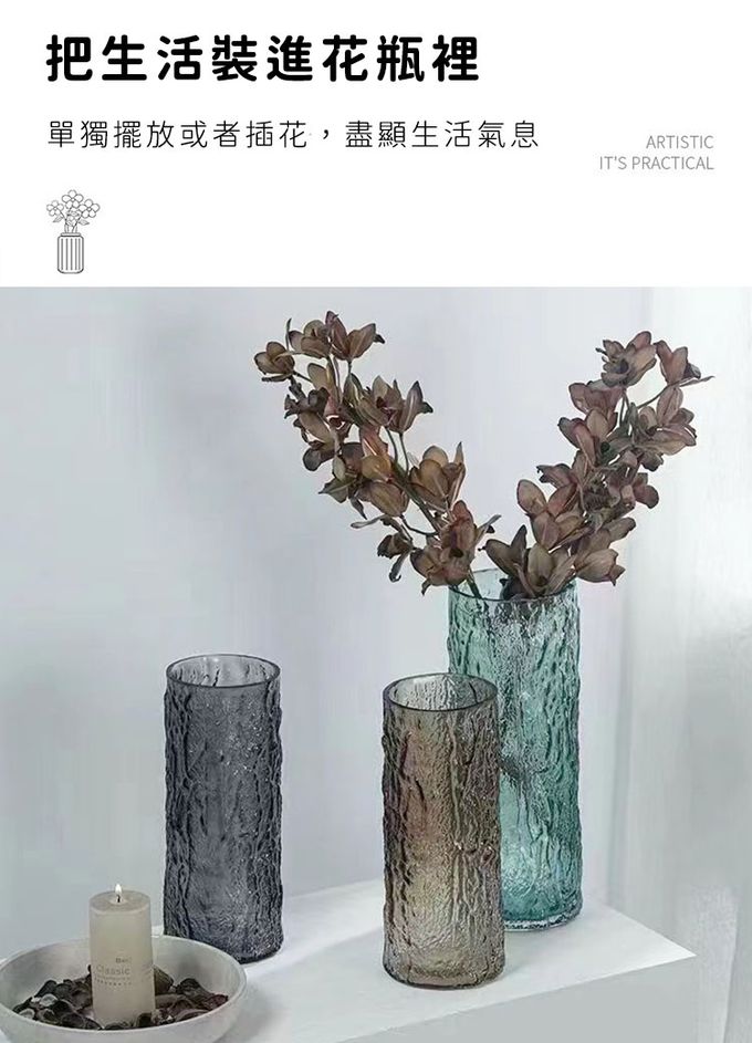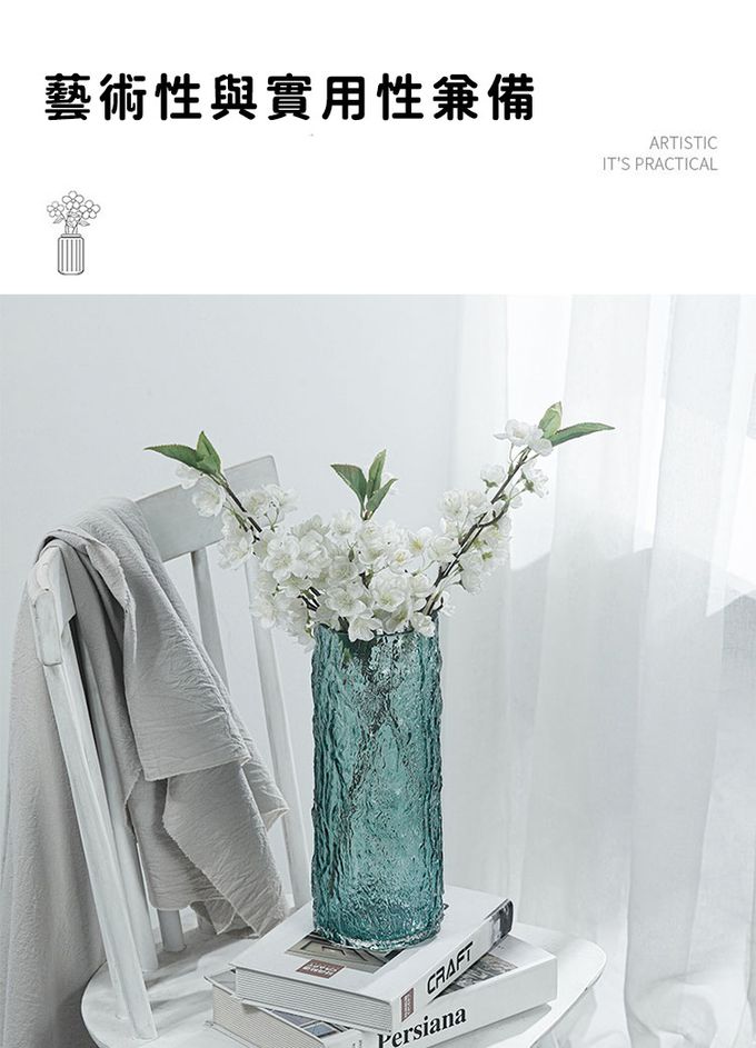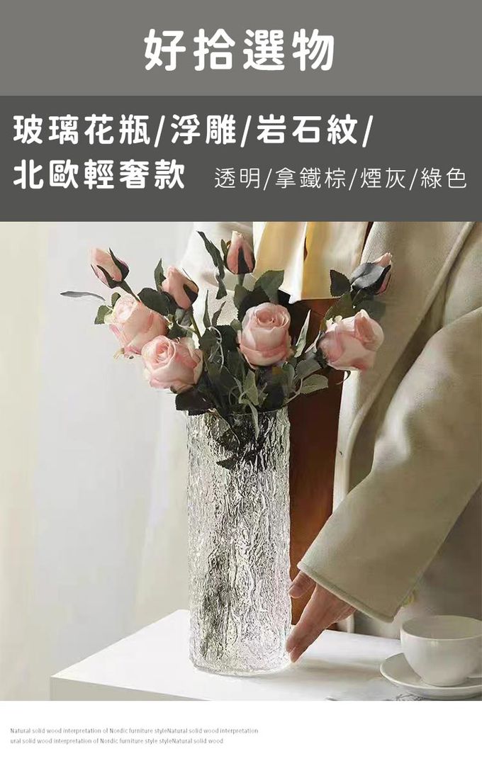 品名:玻璃花瓶/浮雕/岩石紋/北歐輕奢款