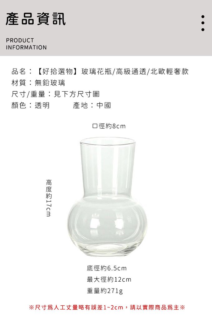 品名:玻璃花瓶/高級通透/北歐輕奢款