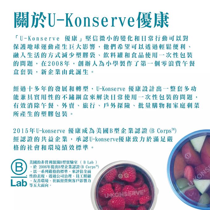◆ 美國 U-Konserve 優康 致力於提供食品安全等級新型無毒不鏽鋼餐具,所有產品均通過 CPSIA 認可的獨立實驗室測試,不含BPA、BPS、鄰苯二甲酸鹽和鉛