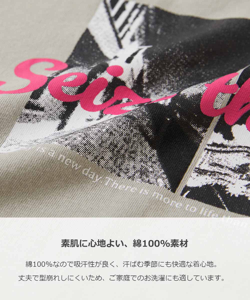 ![日本 devirock - 100%棉 落肩款百搭印花短袖上衣-Merced-粉紅]()