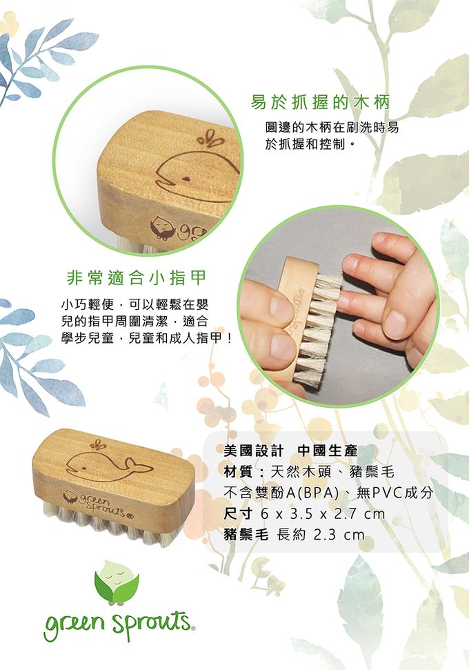 小綠芽指縫刷有助於寶寶的指甲清潔,讓寶貝整天指甲潔淨乾淨。