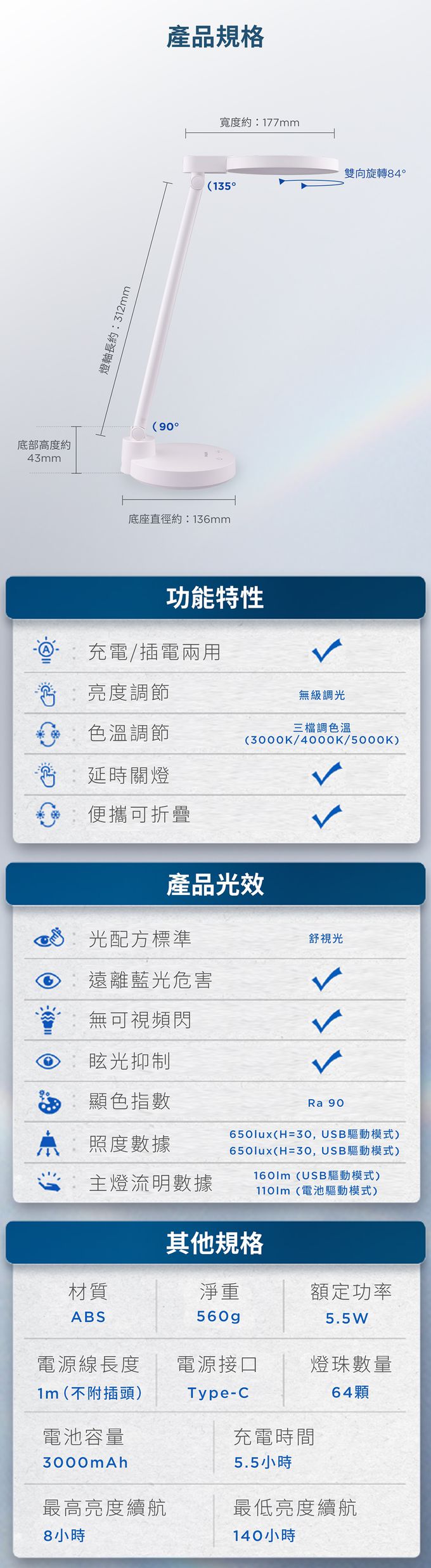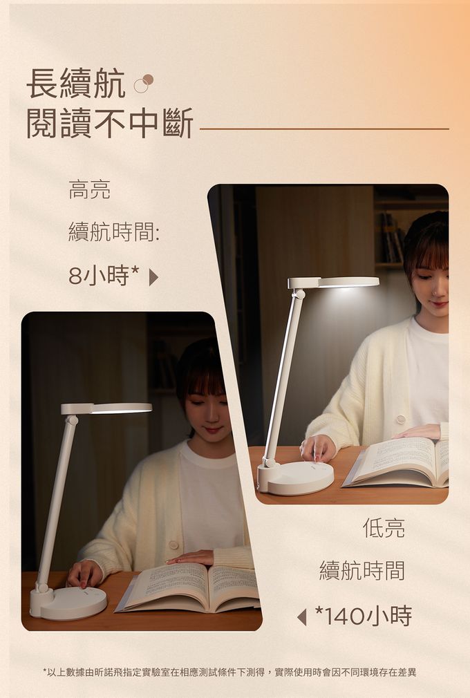 內建鋰電池,停電也可用,超高續航電力(最高亮8小時,最低亮140小時)