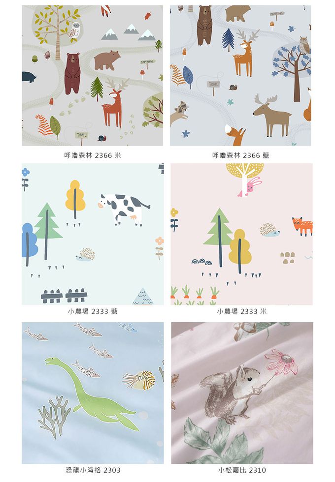 狐狸艾莉森 可可、狐狸艾莉森 綠、小農場 米、小農場 藍、星際夢遊、恐龍小海格、小松嘉比、呼嚕森林 米、呼嚕森林 藍、眠眠兔 藍、眠眠兔 粉、朱蒂花園、貝茲花園、多彼夢園