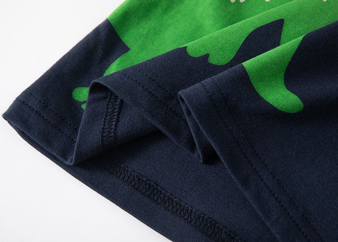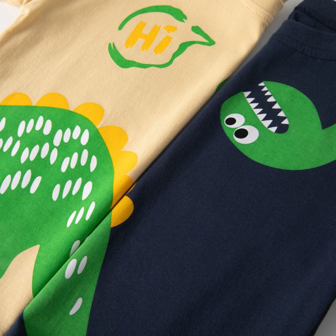 BE TOP - 純棉短袖上衣-可愛恐龍-黃藍拼袖