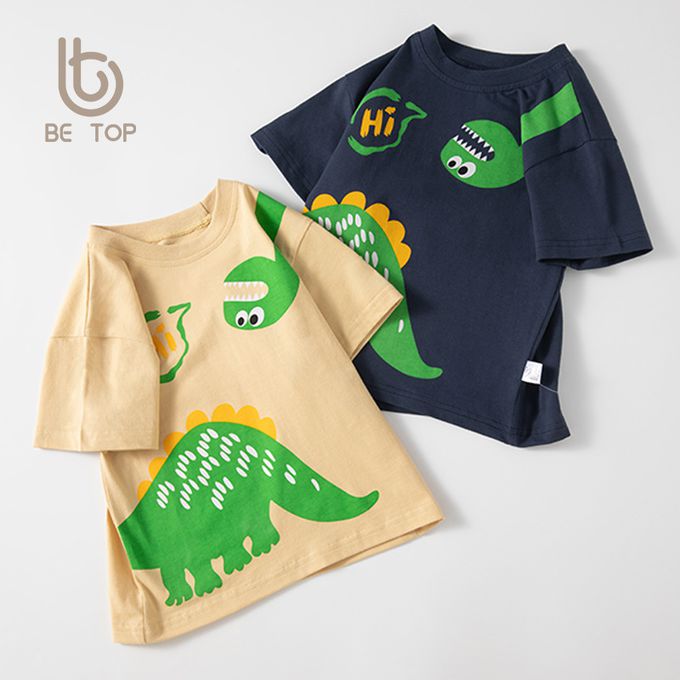 BE TOP - 純棉短袖上衣-帥氣恐龍-米黃