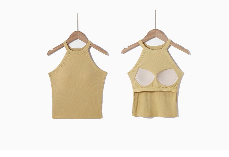 百搭削肩BRA TOP/附罩杯上衣-灰杏色