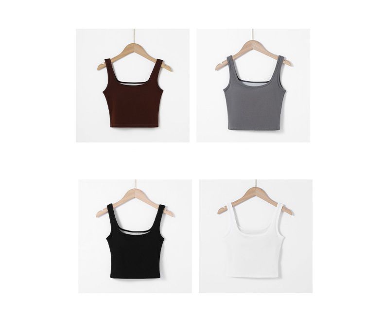 JS - 方領中短版BRA TOP/附罩杯上衣-黑色