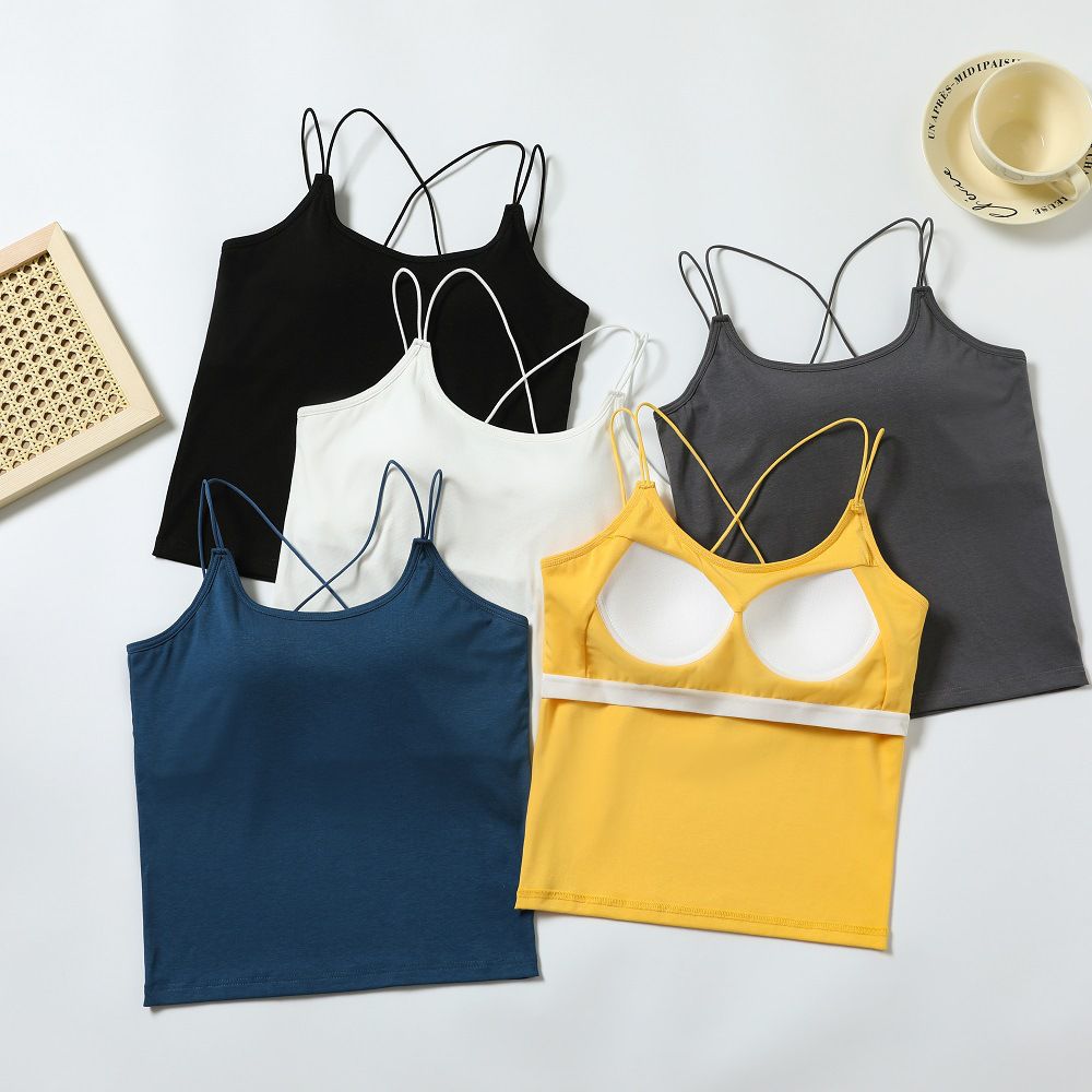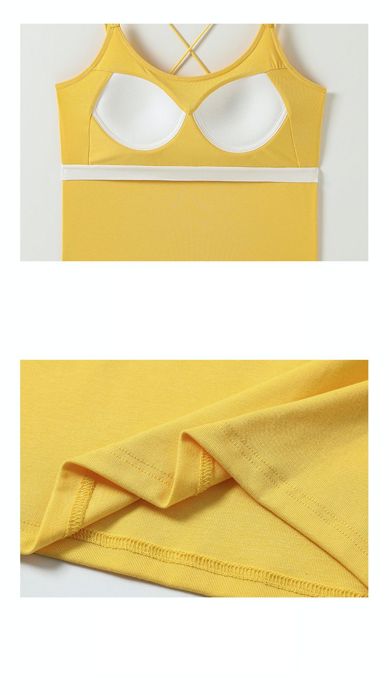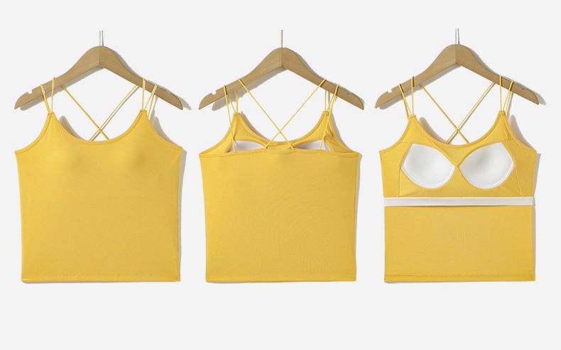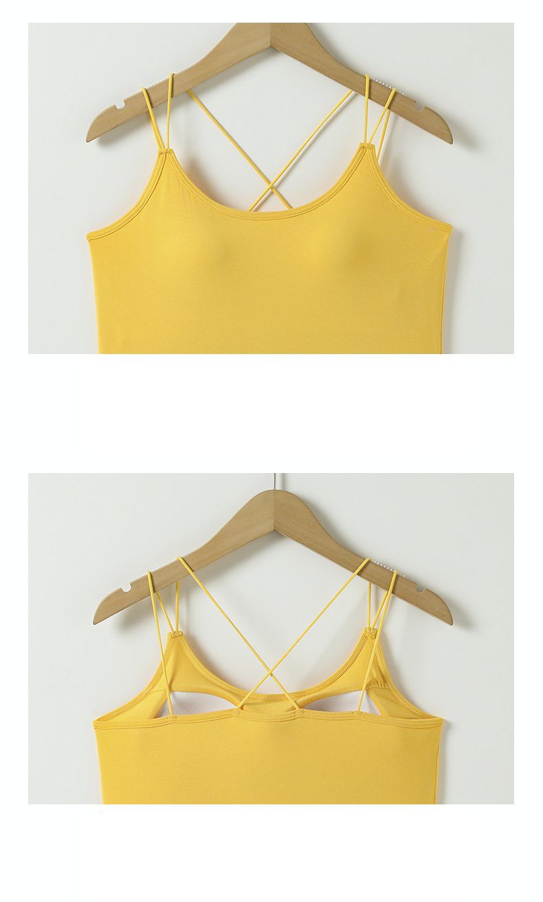 JS - 細肩帶背交叉BRA TOP/附罩杯上衣-黃色