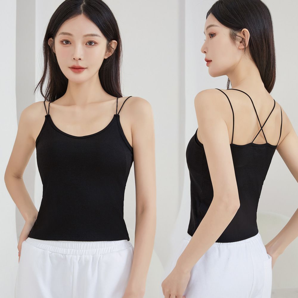 JS - 細肩帶背交叉BRA TOP/附罩杯上衣-黑色