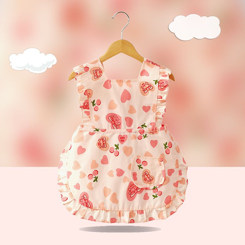 柔軟領口圍裙式防水防髒圍兜-粉愛心