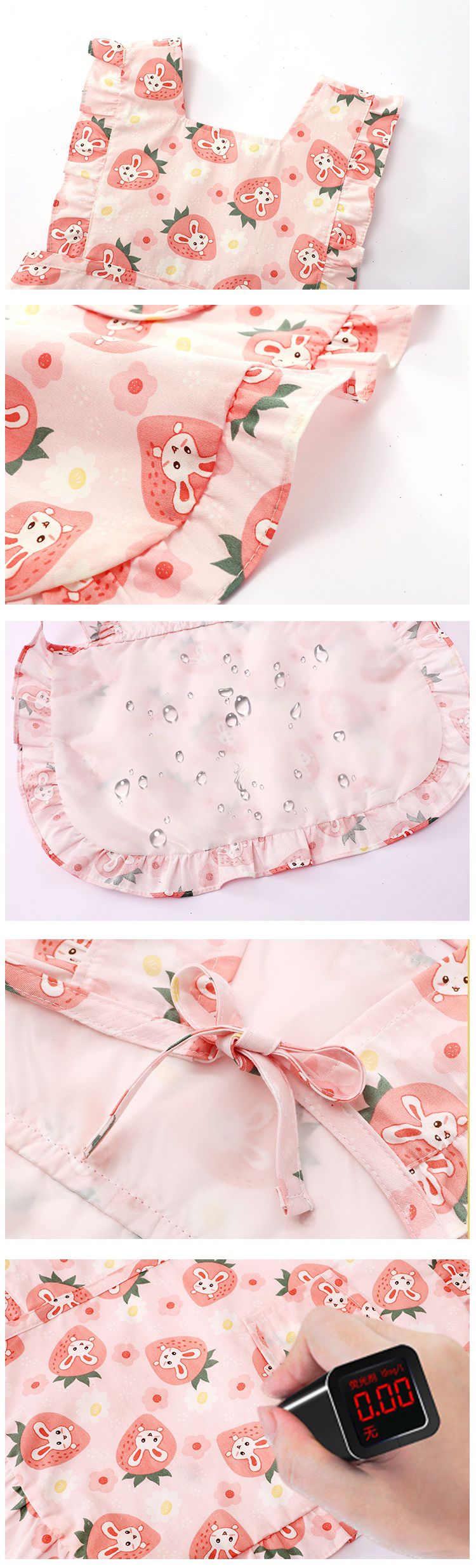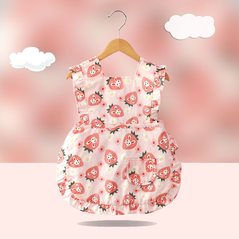 柔軟領口圍裙式防水防髒圍兜-草莓兔兔
