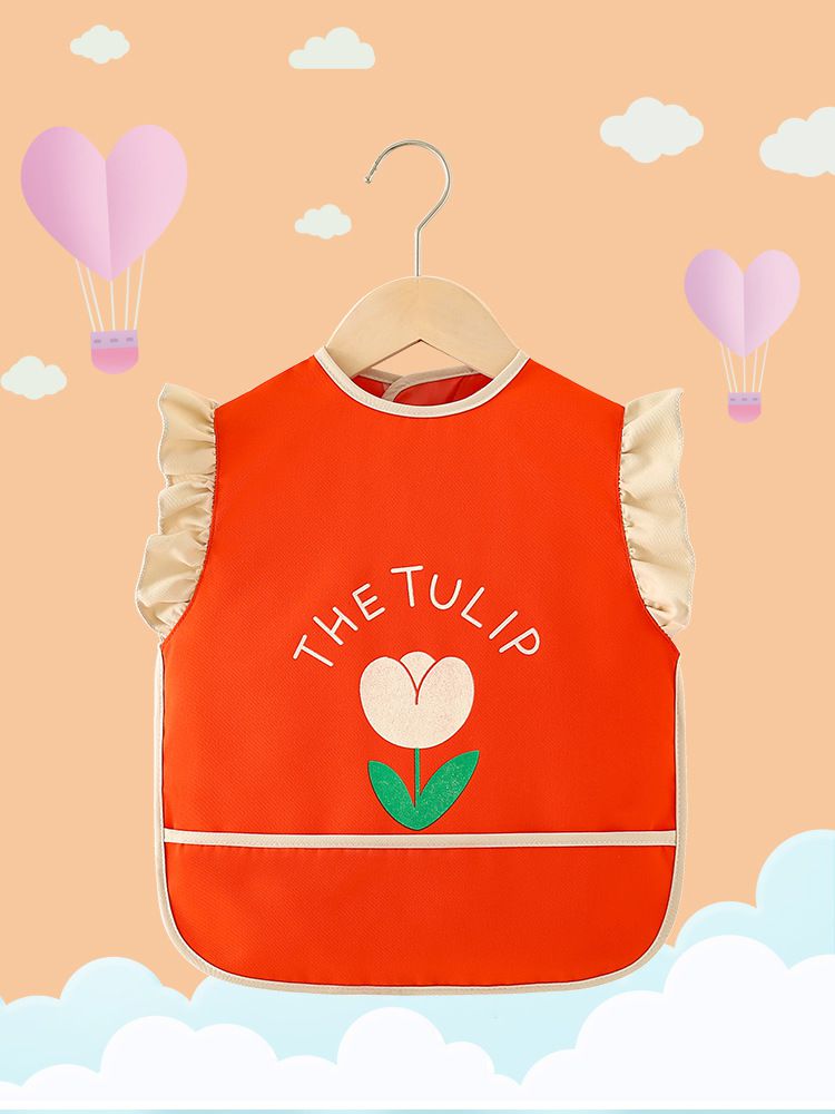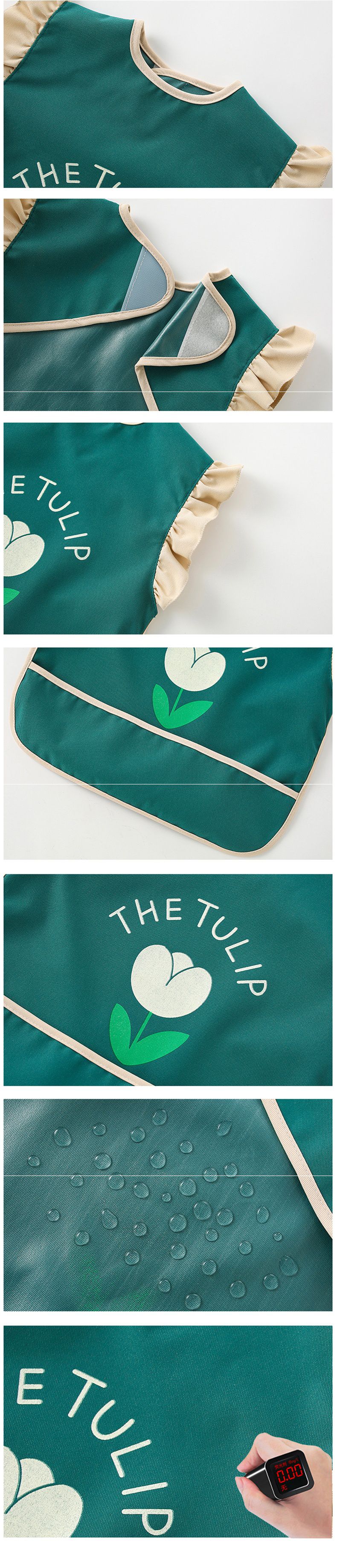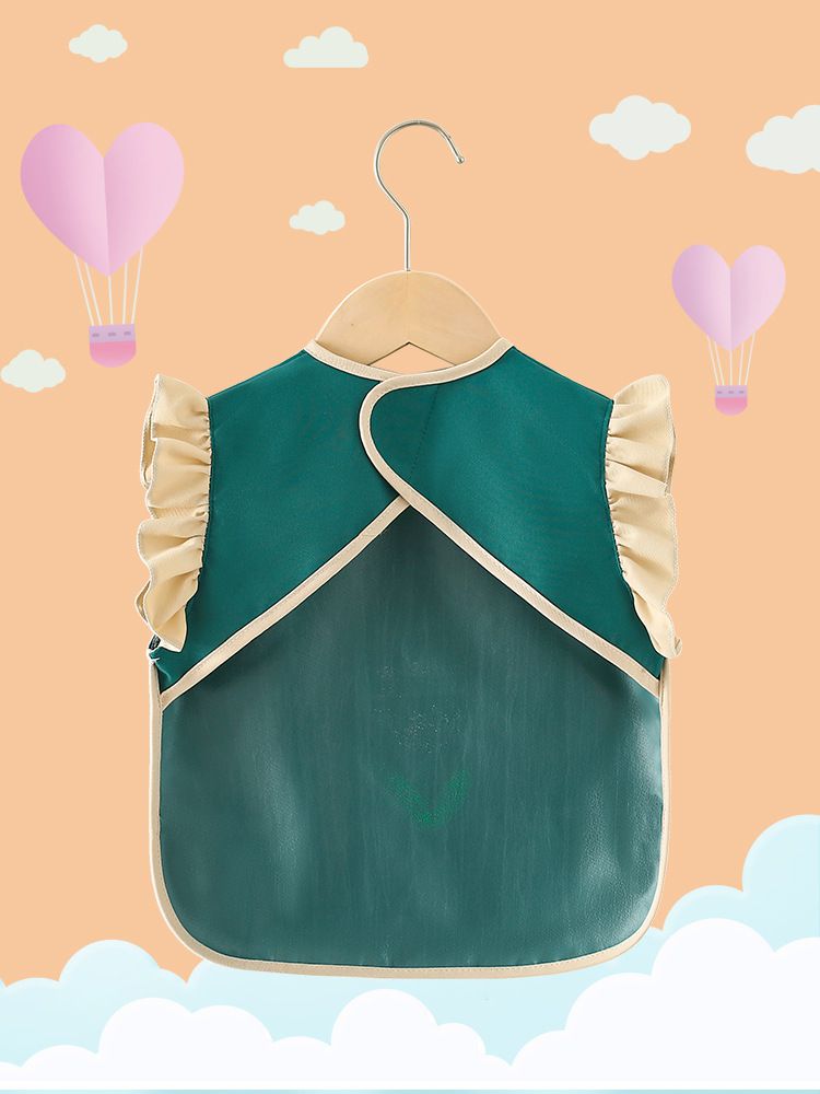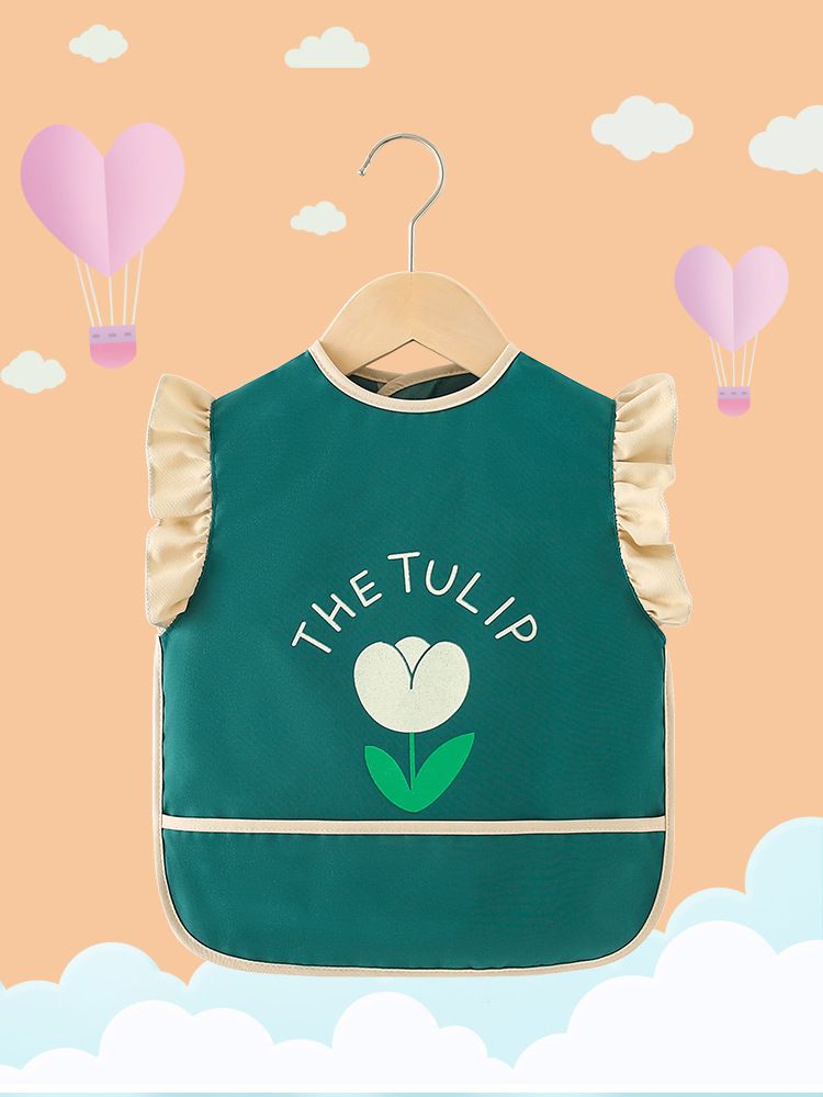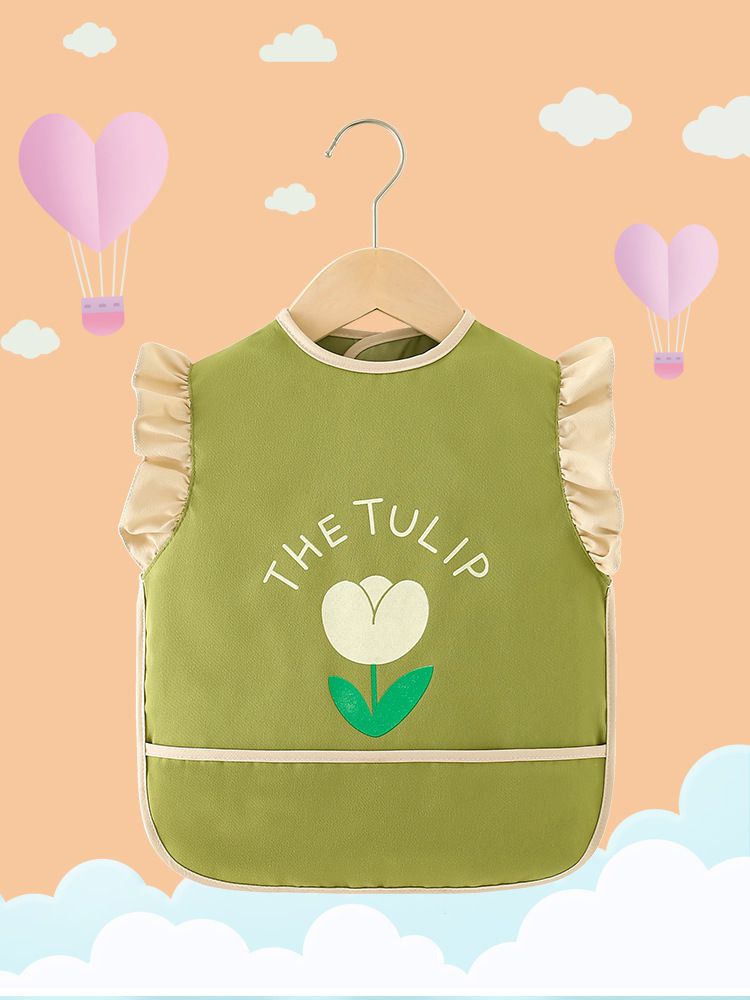 柔軟領口花邊防水防髒圍兜-鬱金香-淺綠色