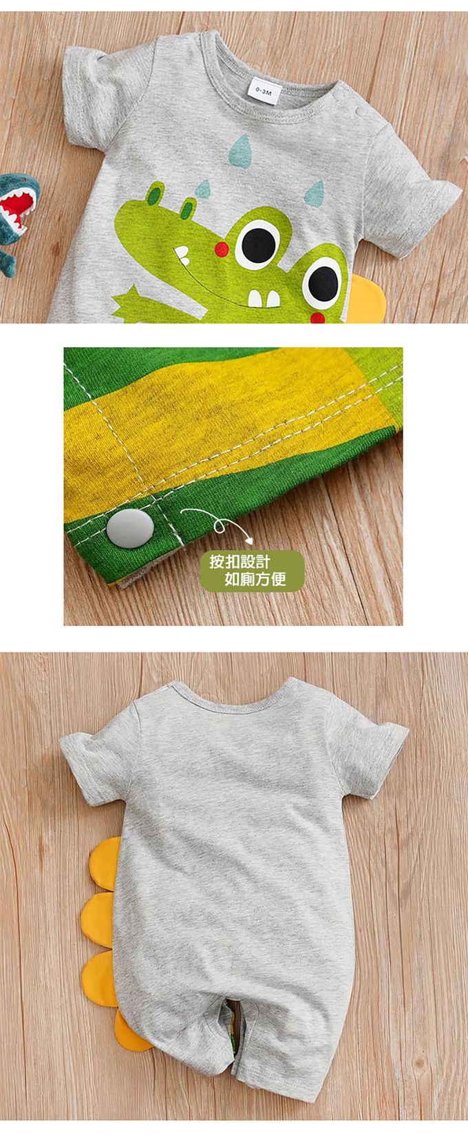 棉質短袖包屁衣 短袖嬰兒服-灰底鱷魚