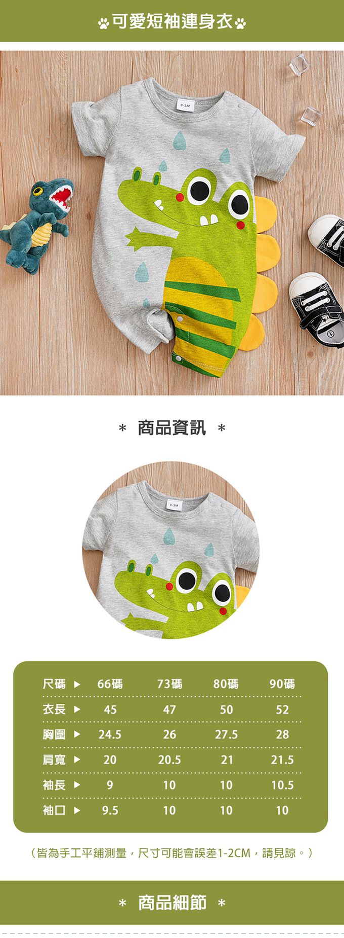 【商品名稱】短袖連身衣-灰底鱷魚
