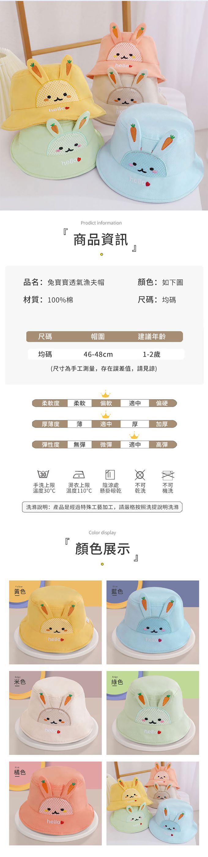 【商品名稱】 兒童遮陽帽 寶寶漁夫帽 防曬帽 卡通蘿蔔兔