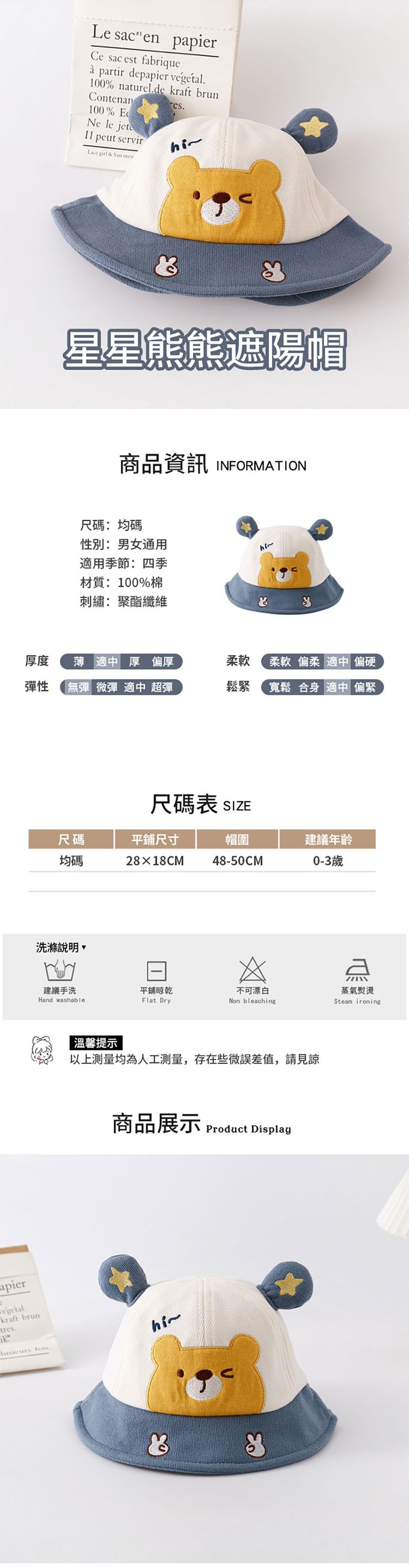 【商品名稱】 寶寶遮陽帽 漁夫帽 兒童防曬帽 刺繡小熊