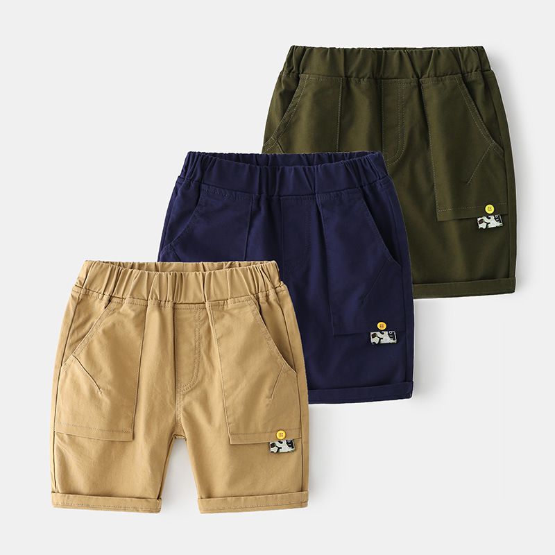 WELLKIDS - 腰鬆緊休閒五分褲-笑臉標籤-卡其