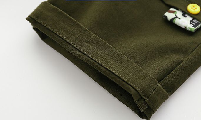 腰鬆緊休閒五分褲-迷彩小標籤-軍綠