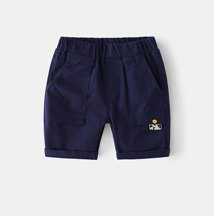 WELLKIDS - 腰鬆緊休閒五分褲-笑臉標籤-藏青