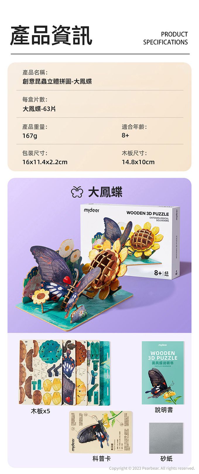 • 品名:創意昆蟲立體拼圖-大鳳蝶