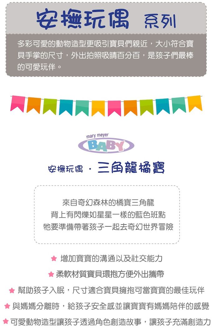 美國 MaryMeyer 蜜兒 - 安撫玩偶-三角龍橘寶