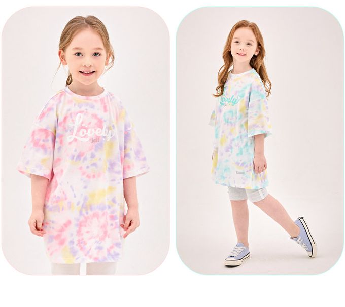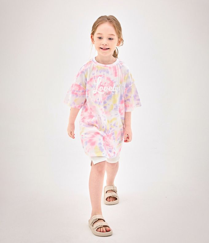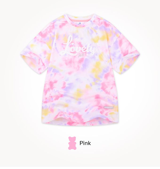 韓國 Jelispoon - Lovely暈染短袖長版上衣-桃粉