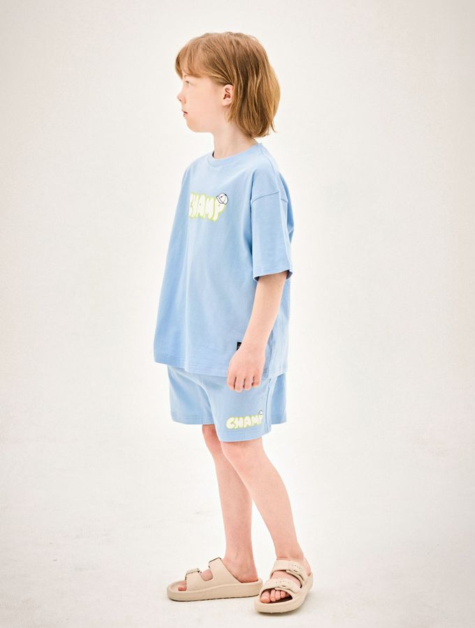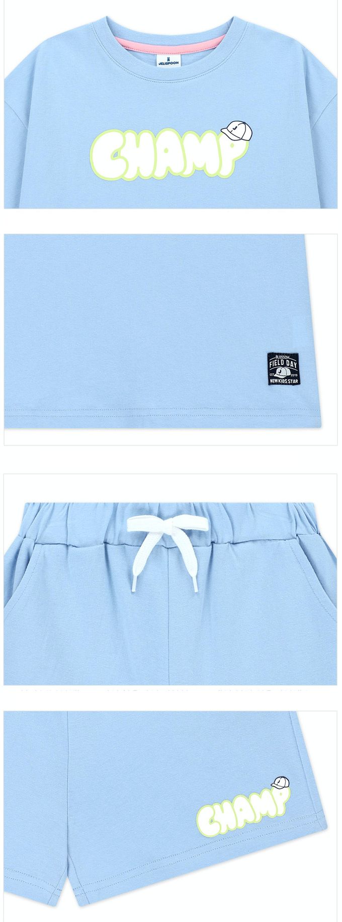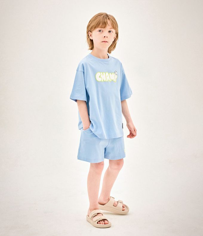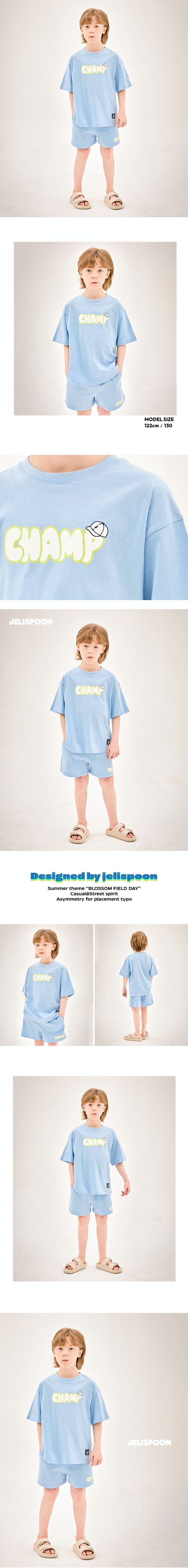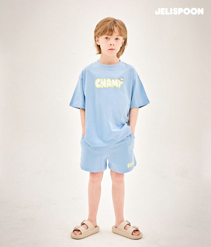韓國 Jelispoon - CHAMP印短袖短褲套裝-天藍