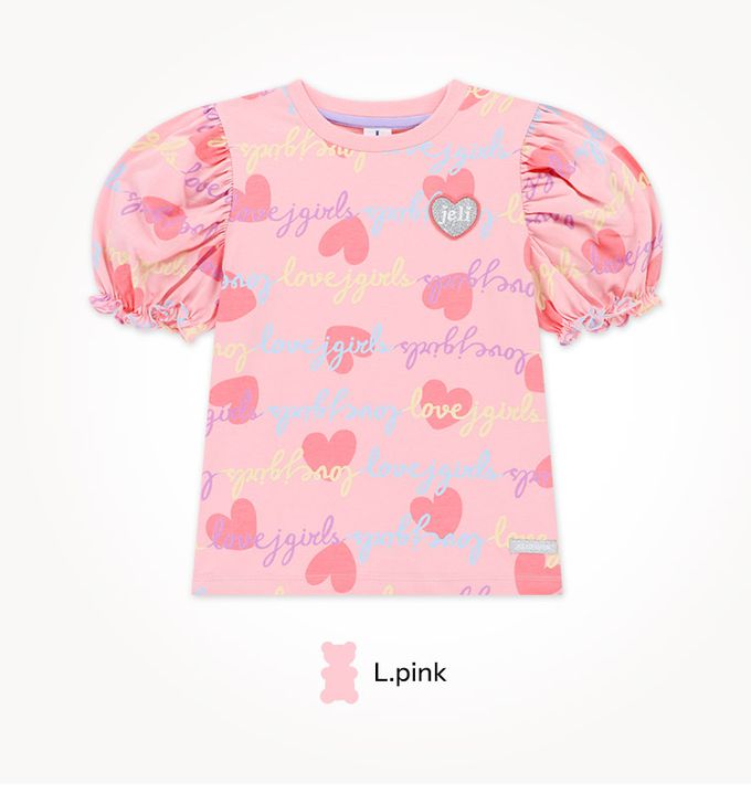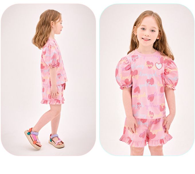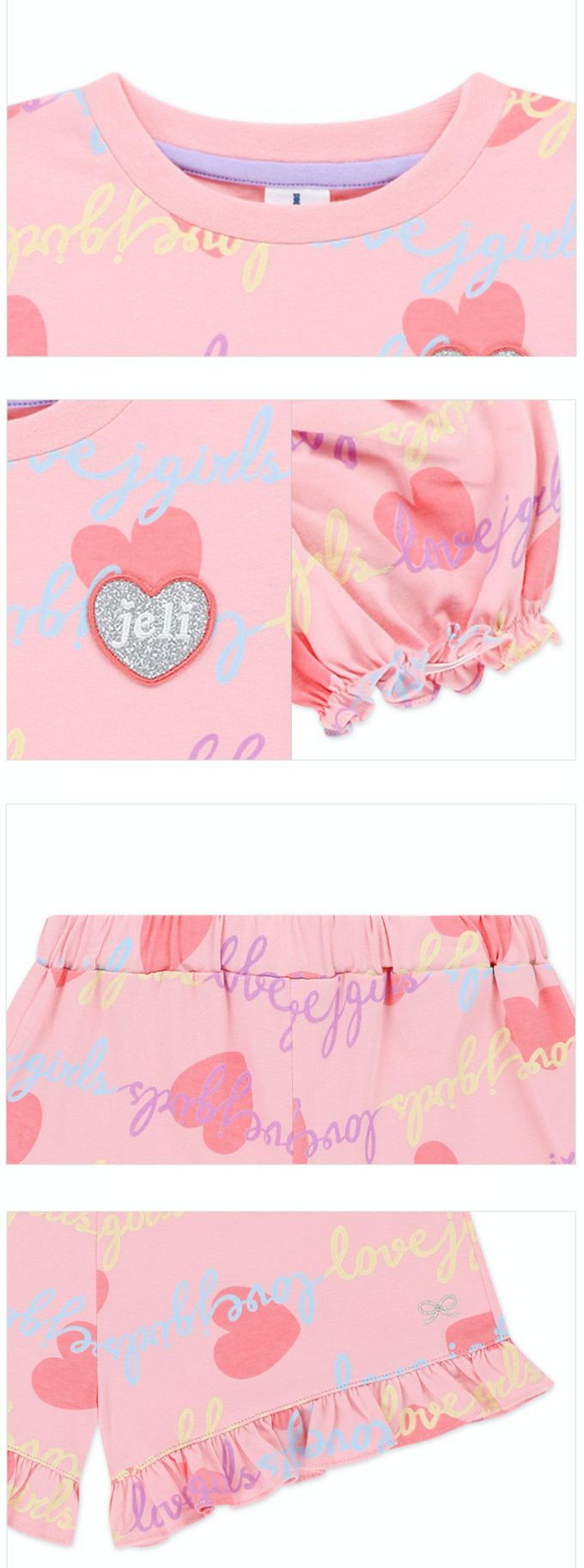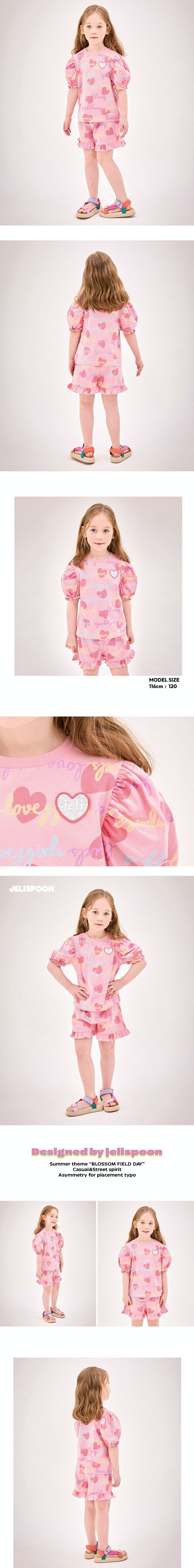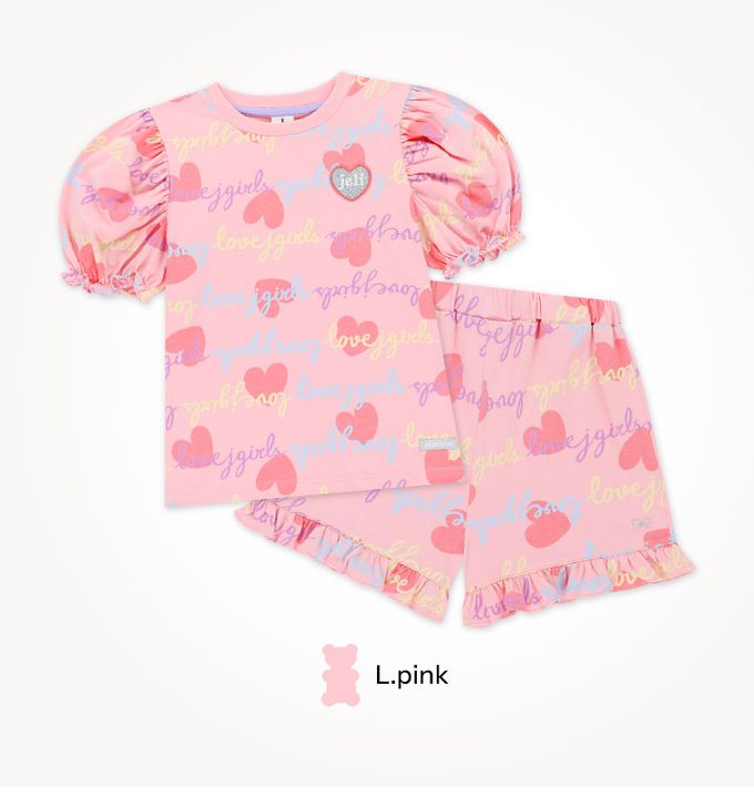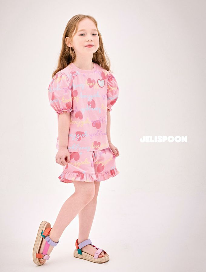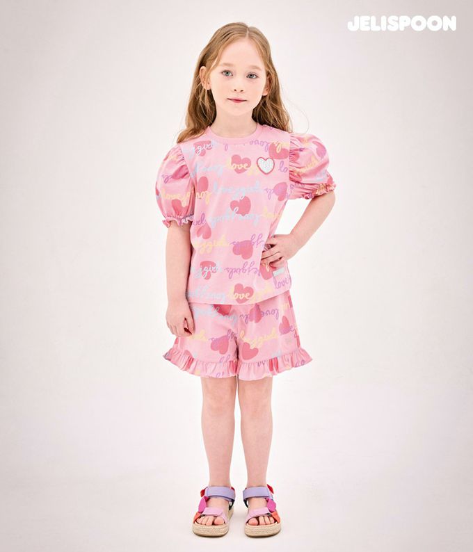 韓國 Jelispoon - Lovely公主袖上衣短褲套裝-粉紅