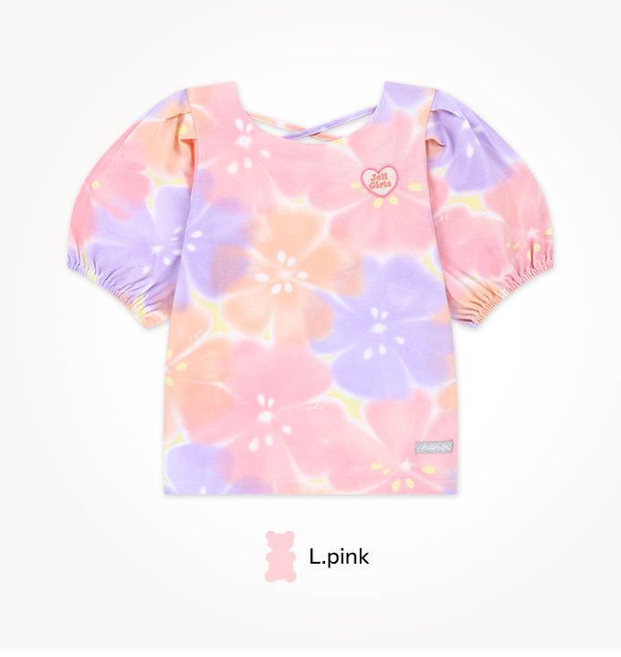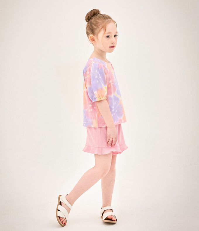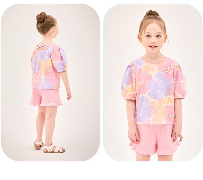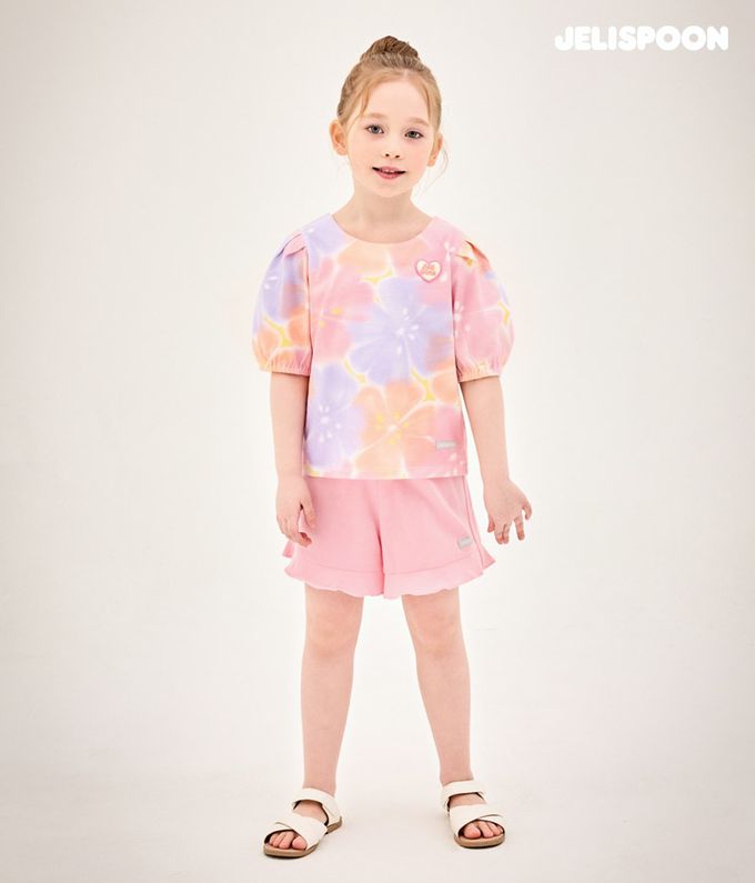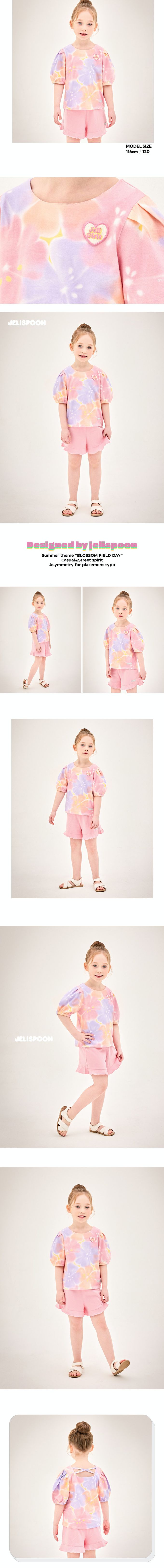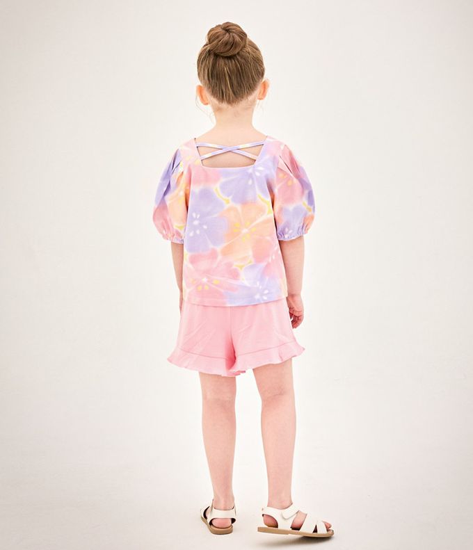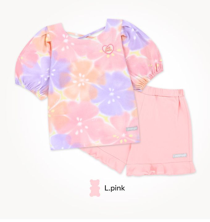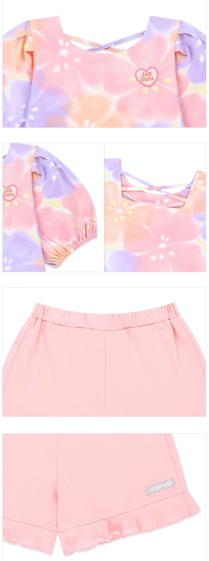 韓國 Jelispoon - 浪漫花印挖背上衣短褲套裝-粉紅