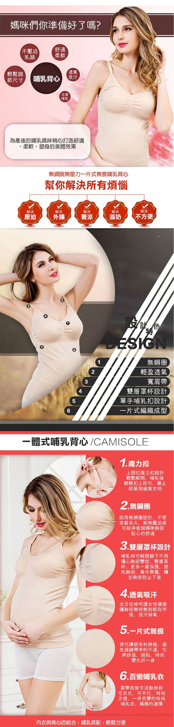 1.一體式設計哺乳背心,無鋼圈、雙層罩杯、透氣吸汗。