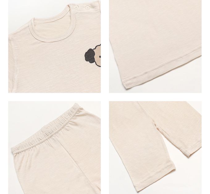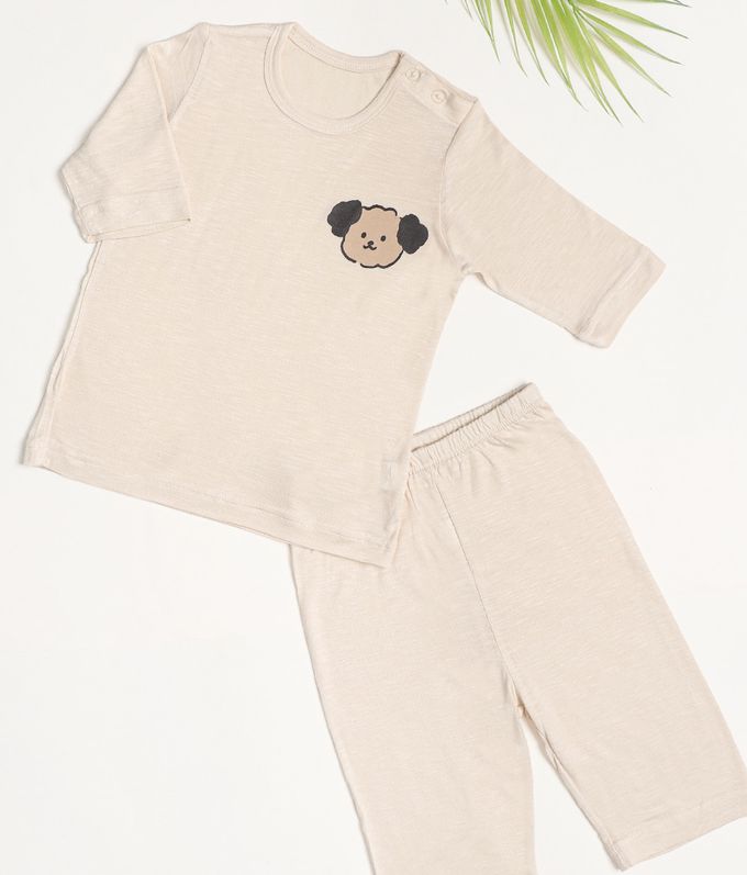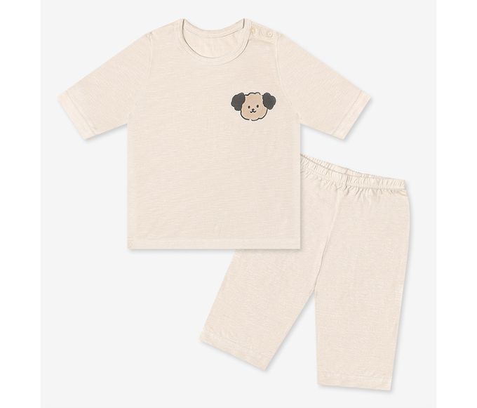 韓國 Mellisse - 韓製莫代爾親膚7分袖家居服-捲毛狗-淺杏