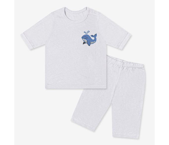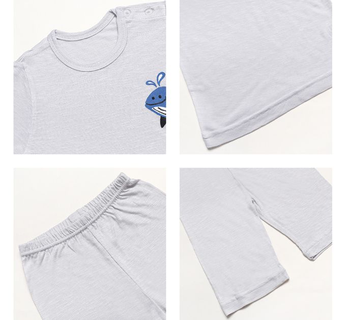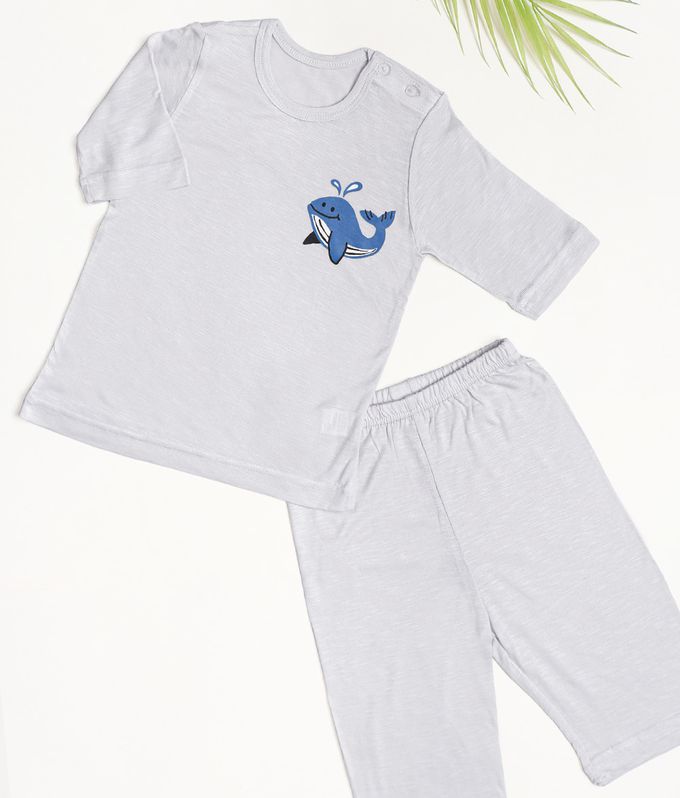 韓國 Mellisse - 韓製莫代爾親膚7分袖家居服-鯨魚-淺灰