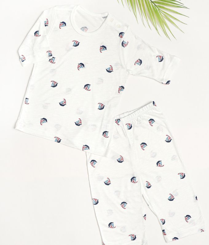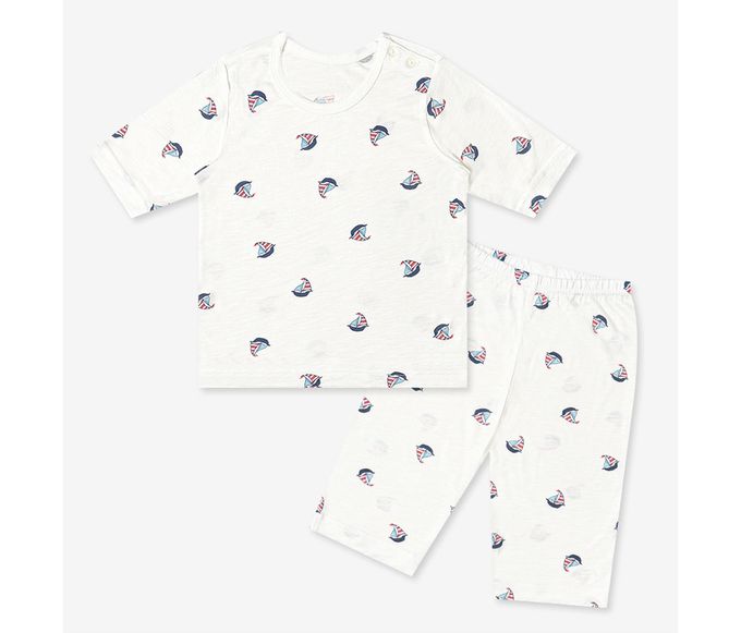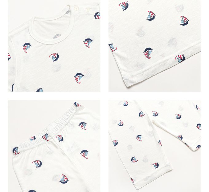 韓國 Mellisse - 韓製莫代爾親膚7分袖家居服-帆船-白