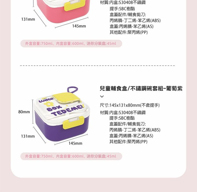 【商品容量】碗450ml、盒750ml、分裝盒45ml