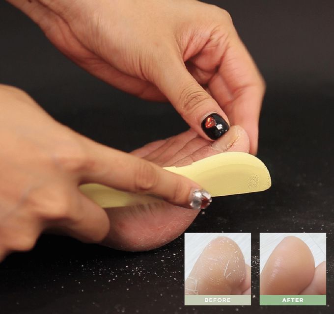 ✻使用後撥開腳皮細屑,粉嫩的腳跟腳趾就出現在眼前~去除角質,將腳沖洗乾淨後,請塗抹乳液等產品進行保濕。