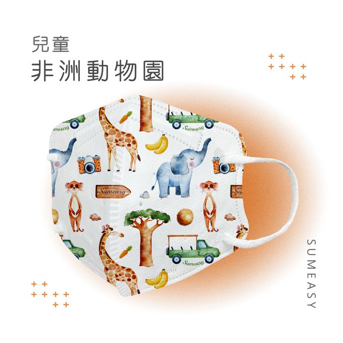 順易利口罩 SUMEASY - 兒童鬆緊立體醫用口罩-非洲動物園 (S,約12.5cm x 9.8cm,6-12歲適用)-30入