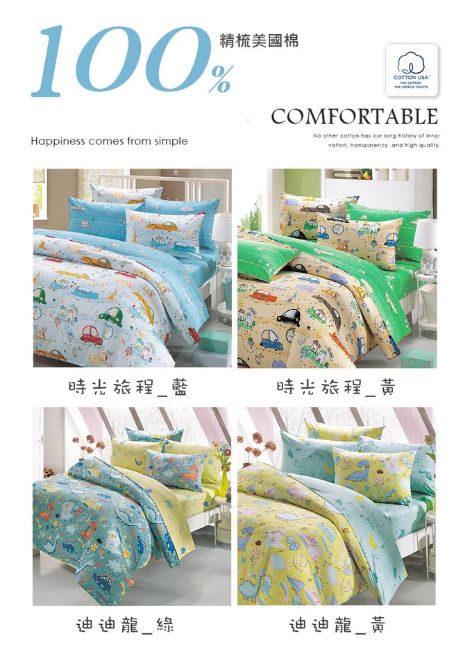 內容物:床包 1 件+ 兩用被套1 件 + 枕頭套 2件